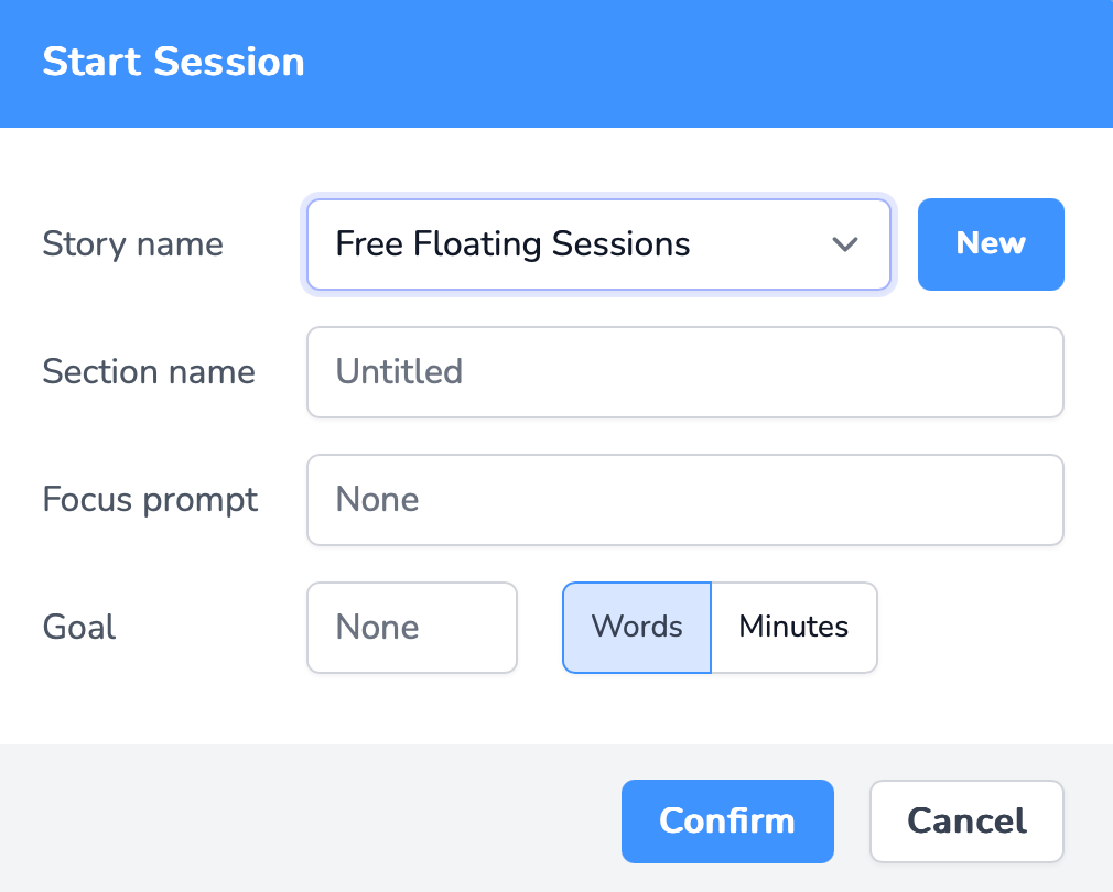 You can enter something you’d like to focus on into the Focus Prompt. You can name your session, and also add it to a collection of sessions we call a Story. When you’re ready to begin, click Confirm.